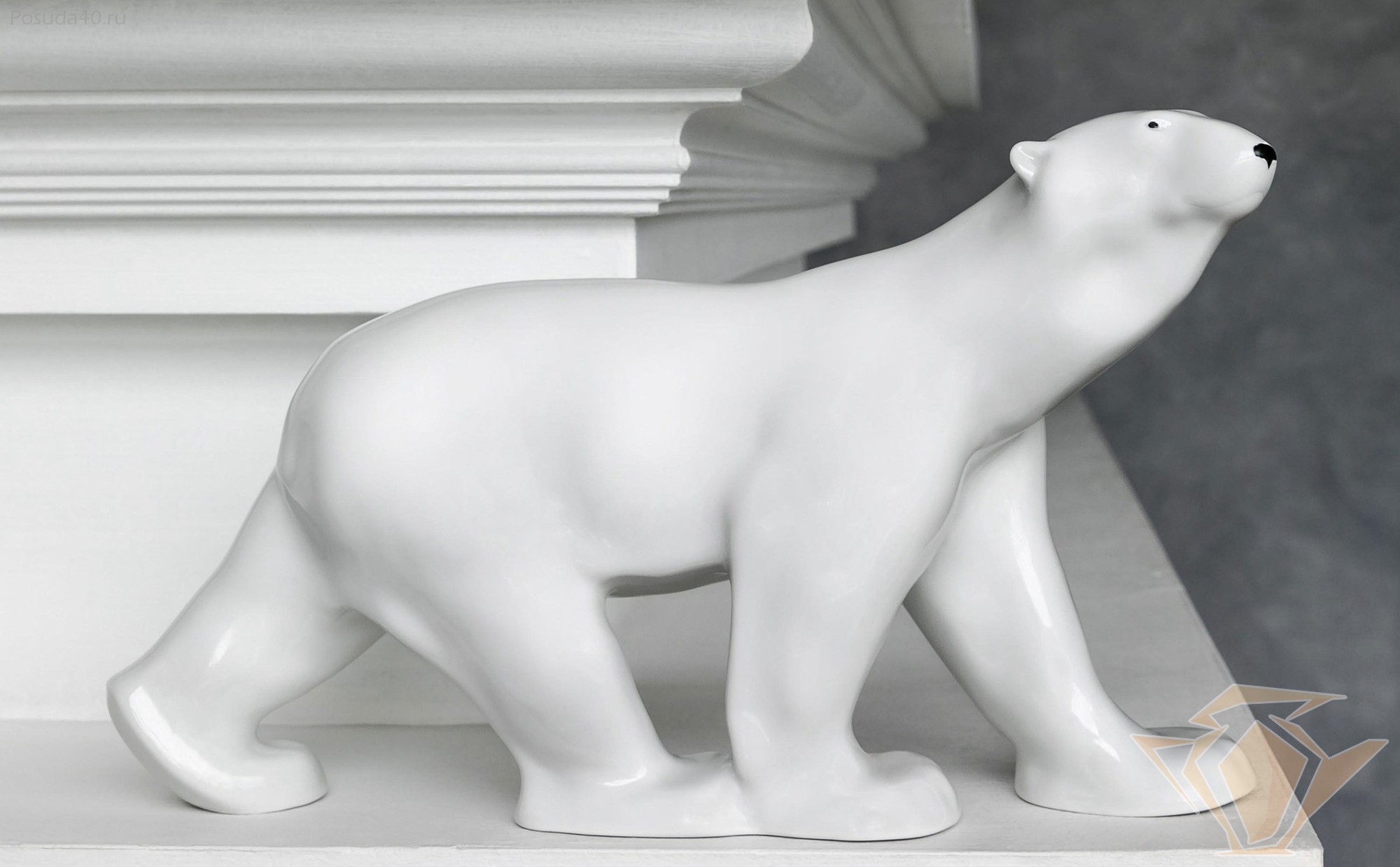 Статуэтка ИФЗ Медведь идущий, 43x24x15см, ручная роспись, фарфор