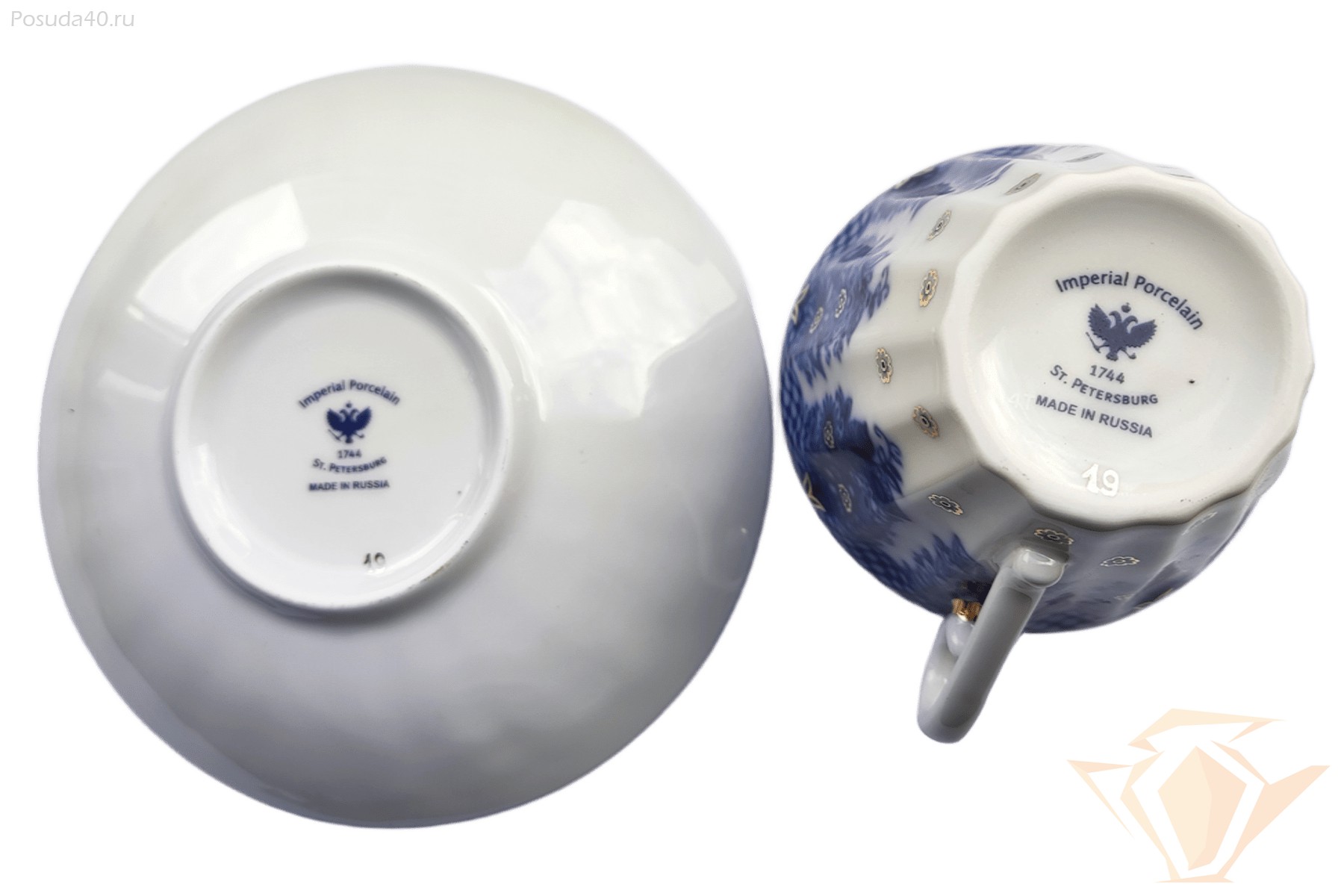 Чашка с блюдцем чайная Корзиночка, форма Лучистая, Императорский фарфоровый завод