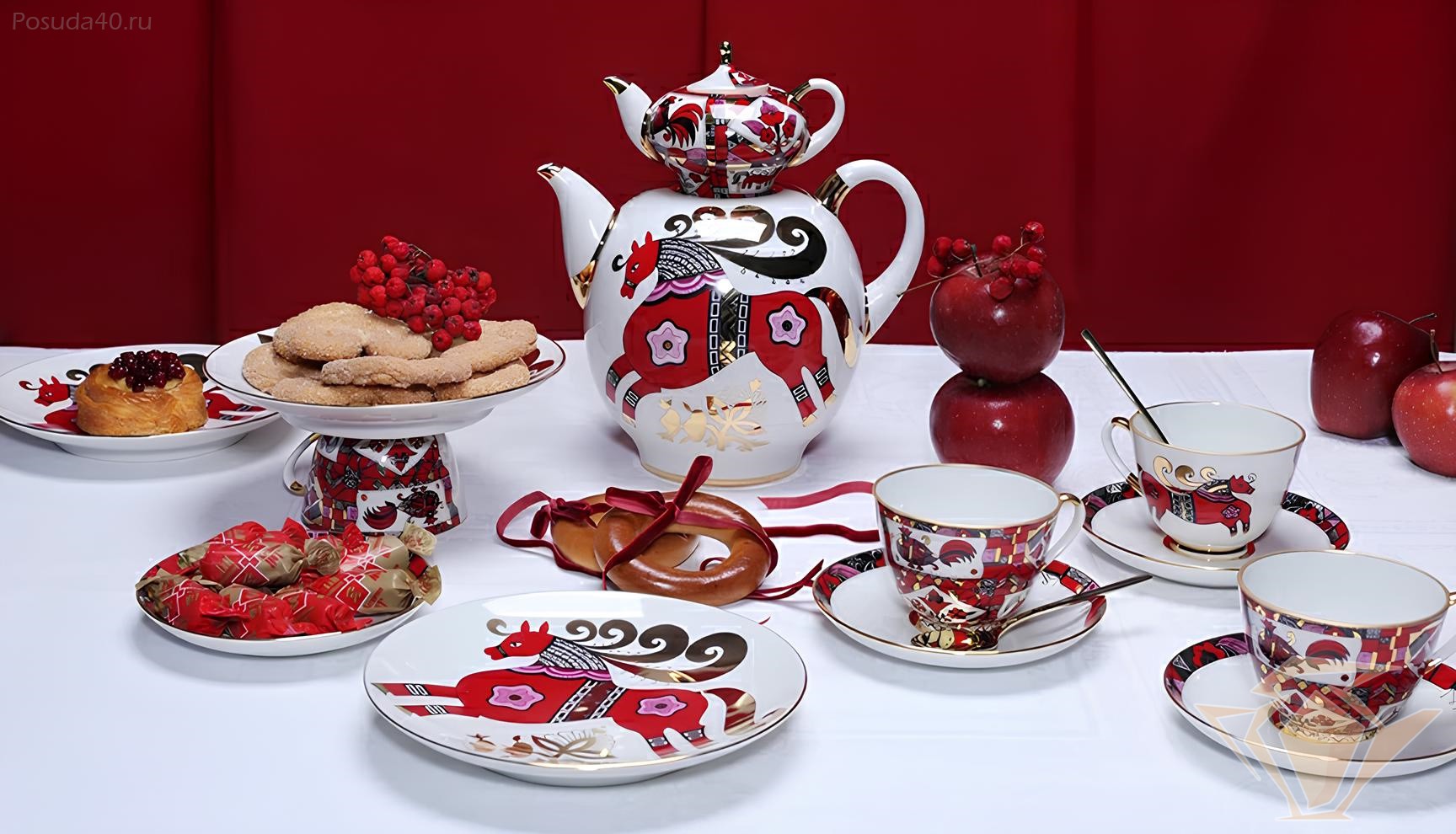 Комплект чайников ИФЗ Новгородский, Красный конь, фарфор