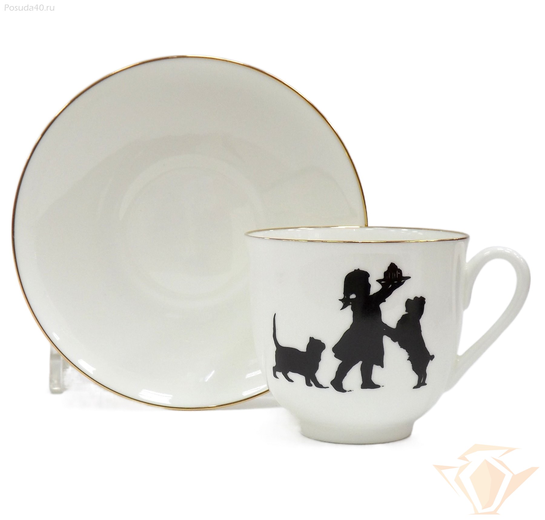 Чашка с блюдцем Силуэты Именинница, форма Ландыш, Императорский фарфоровый завод