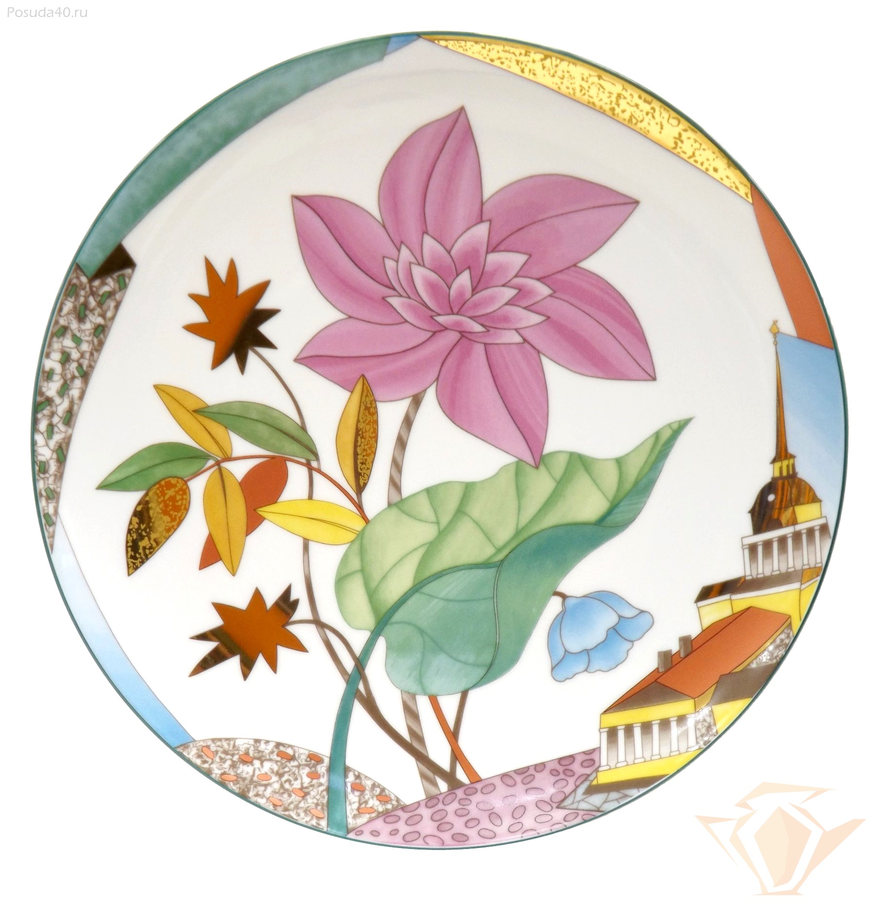 Тарелка декоративная Цветущий город, форма Эллипс, Императорский фарфоровый завод: