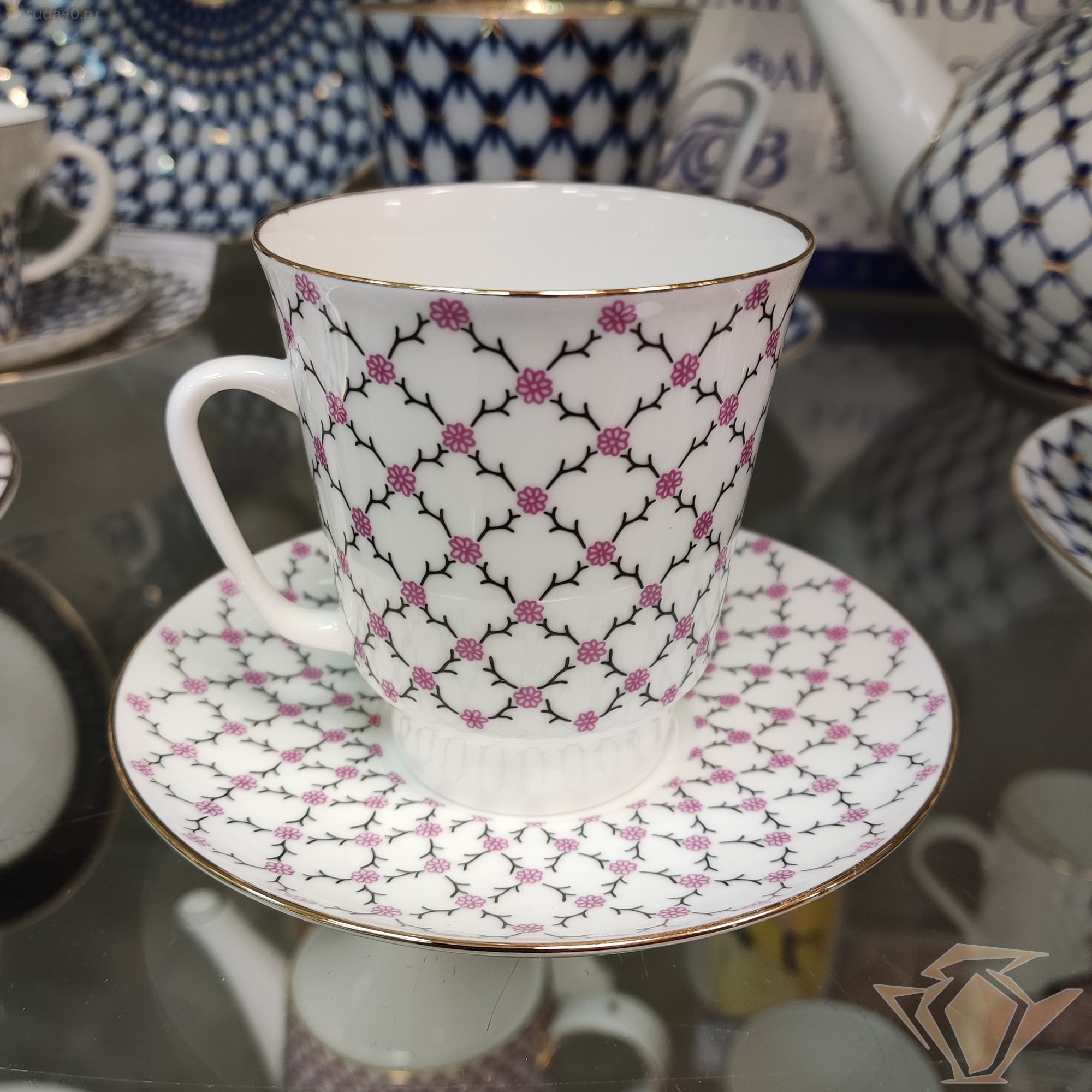 Чашка с блюдцем ИФЗ Майская, Розовая сетка 165мл, костяной фарфор