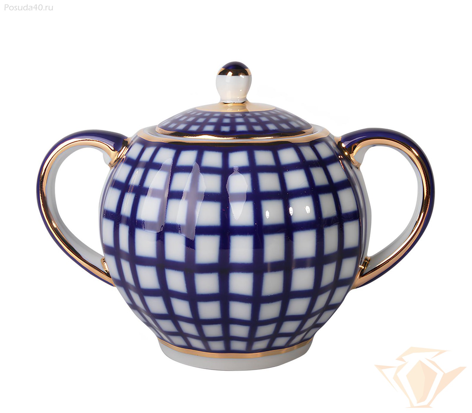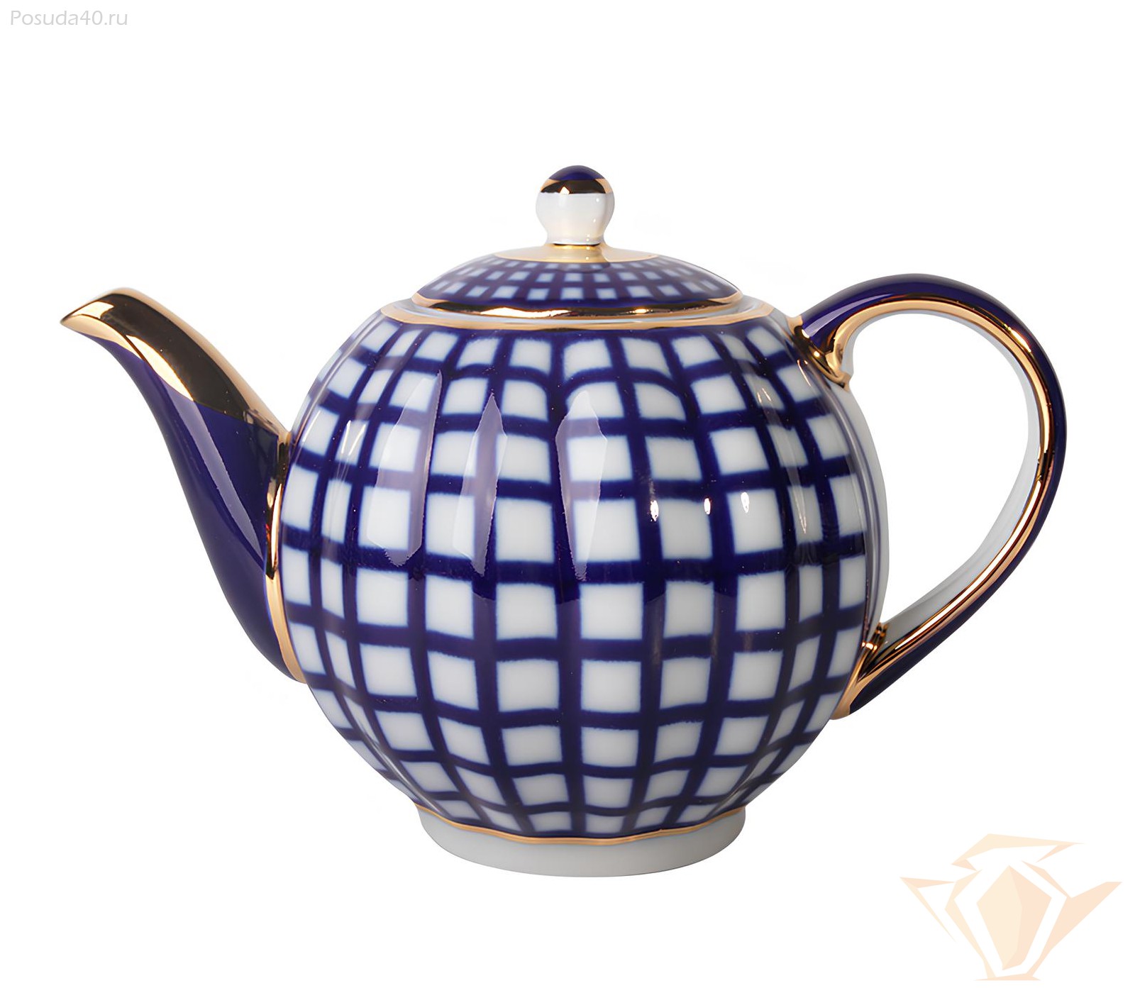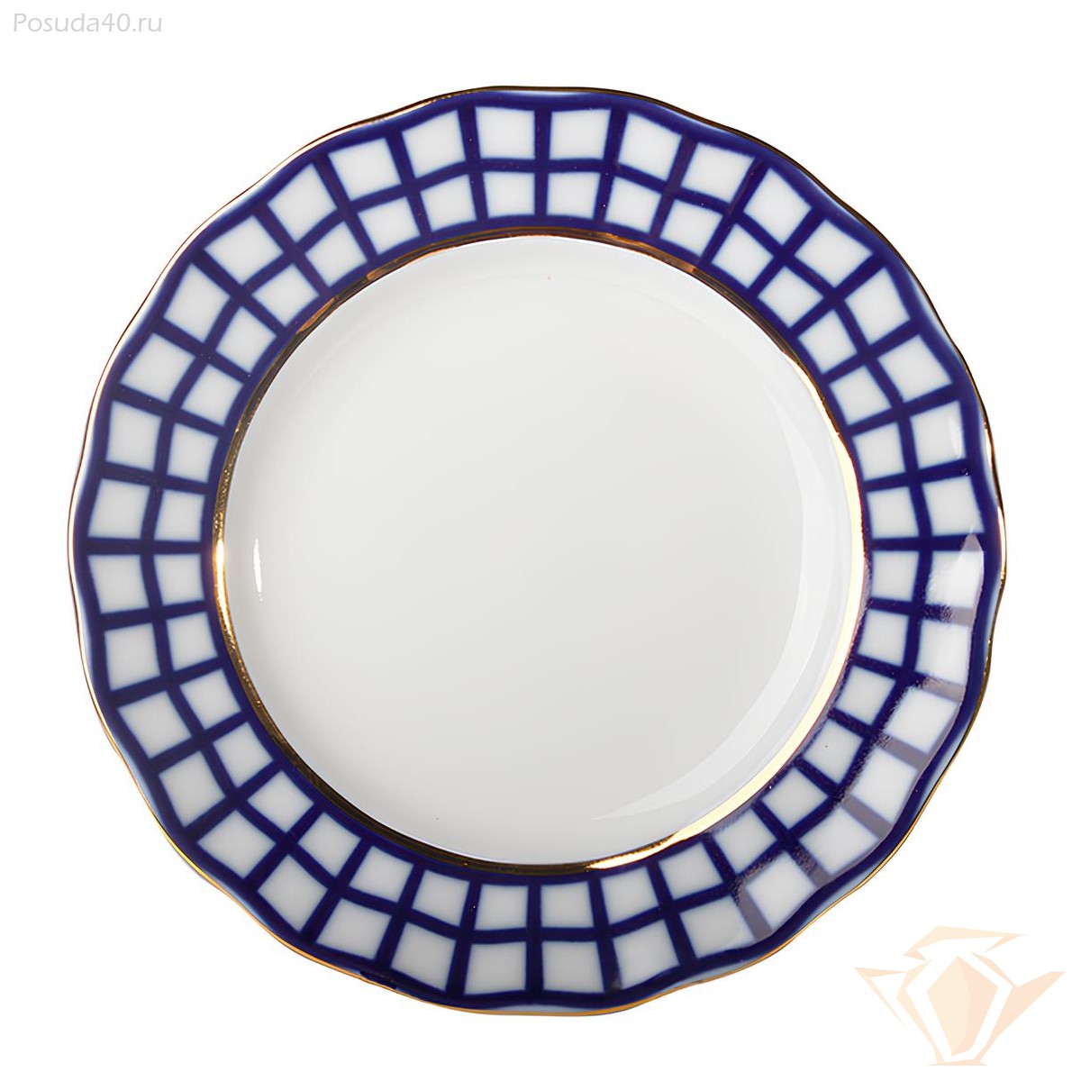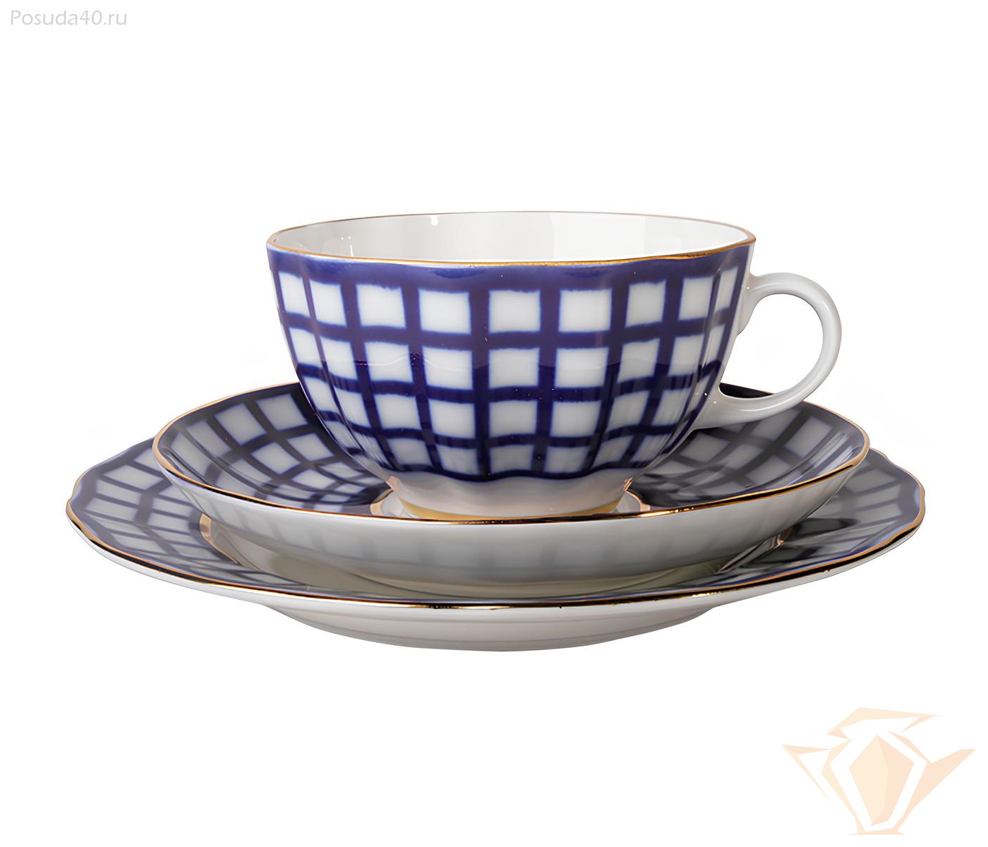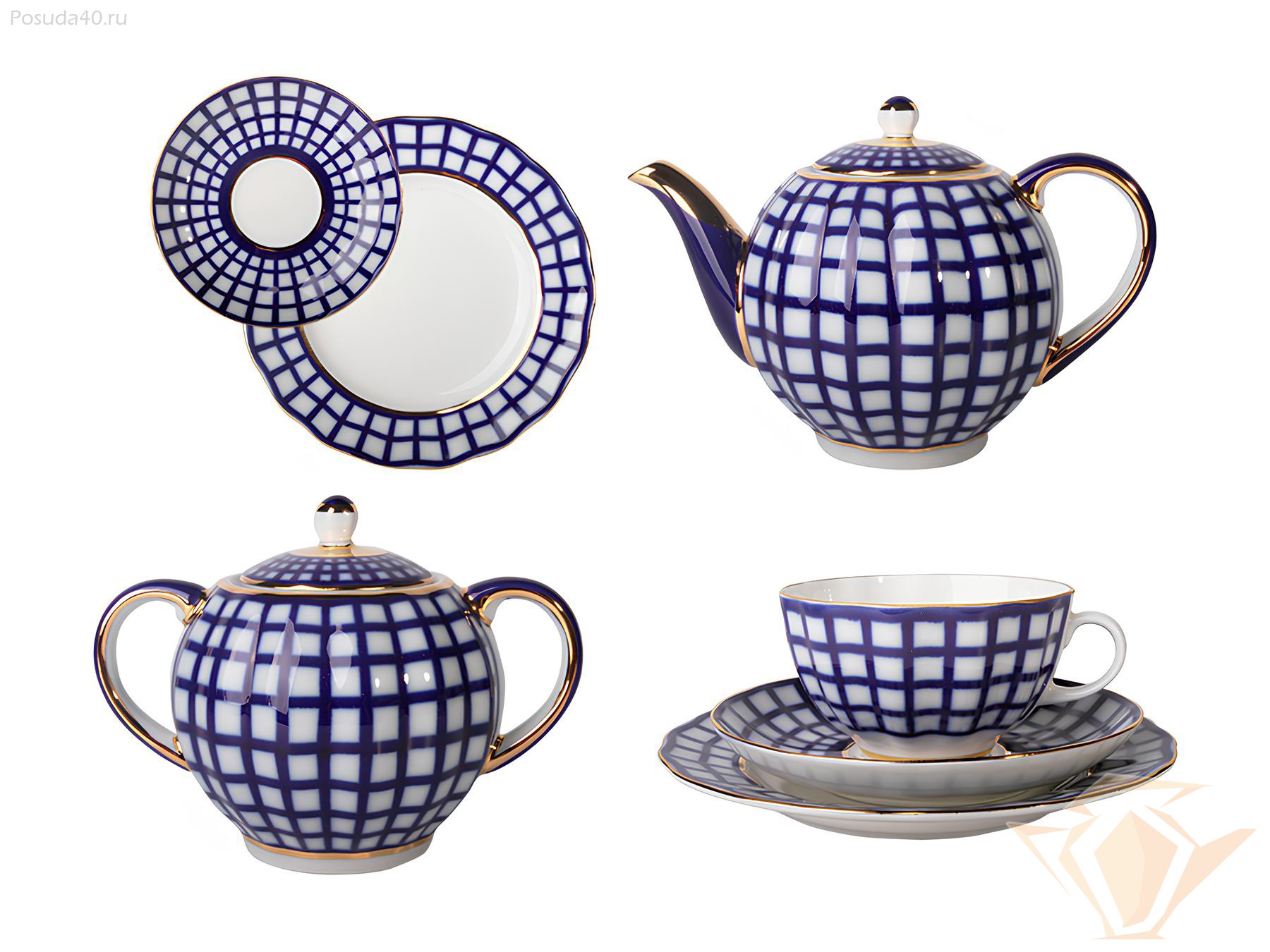 Сервиз чайный Кобальтовая клетка, форма Тюльпан, Императорский фарфоровый завод, 20 предметов на 6 персон