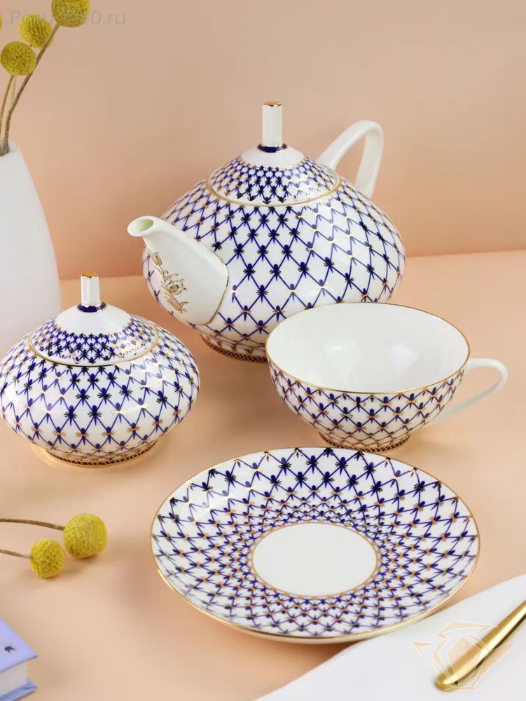 Сервиз чайный ИФЗ Купольная Кобальтовая сетка, 14 предметов, костяной фарфор