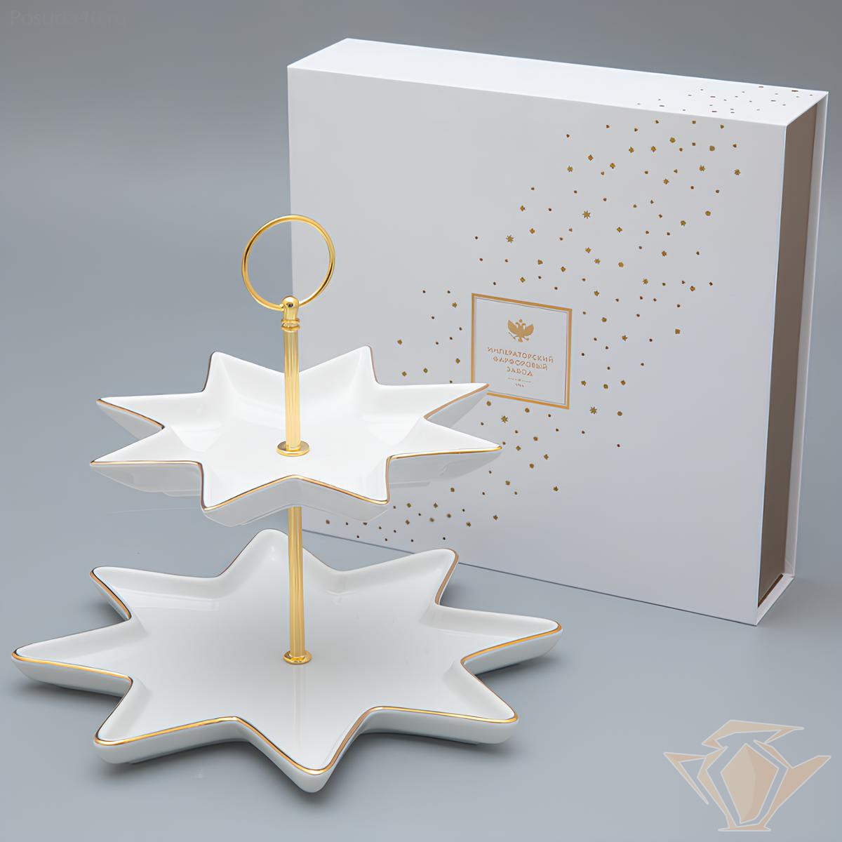 Этажерка 2-х ярусная, рисунок Золотая лента, форма Звезда, Императорский фарфоровый завод, подарочный набор