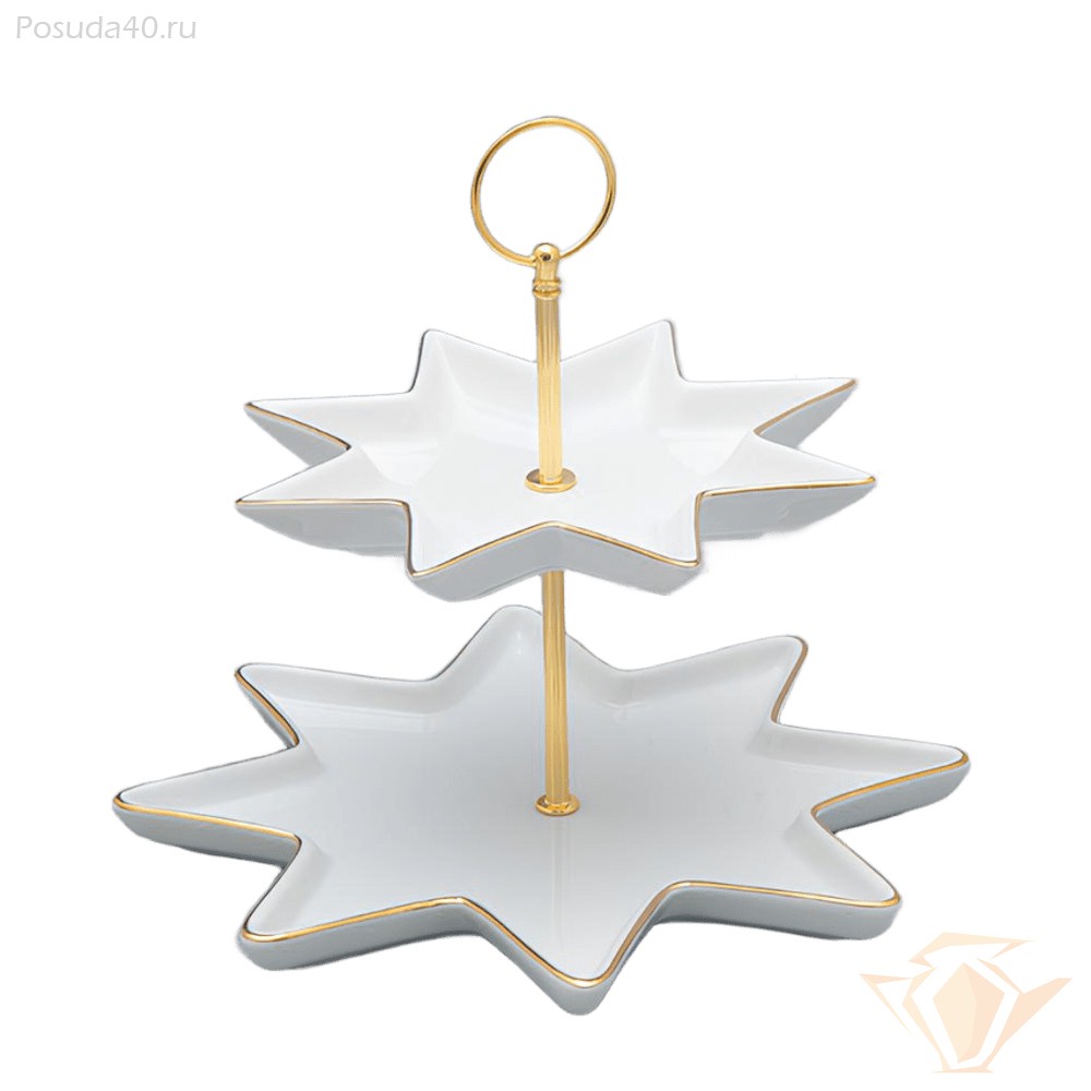 Этажерка 2-х ярусная ИФЗ Звезда Золотая лента, подарочный набор, фарфор / 81.31550.00.1