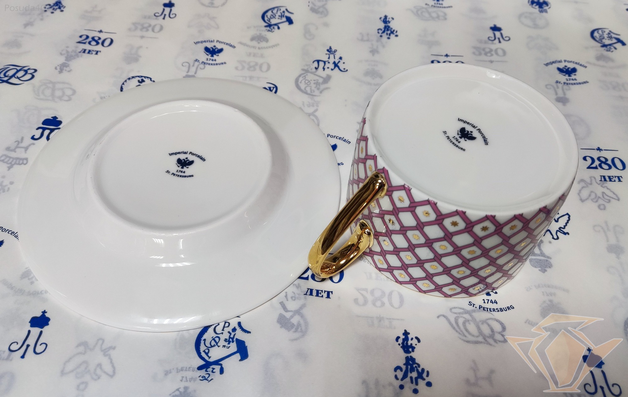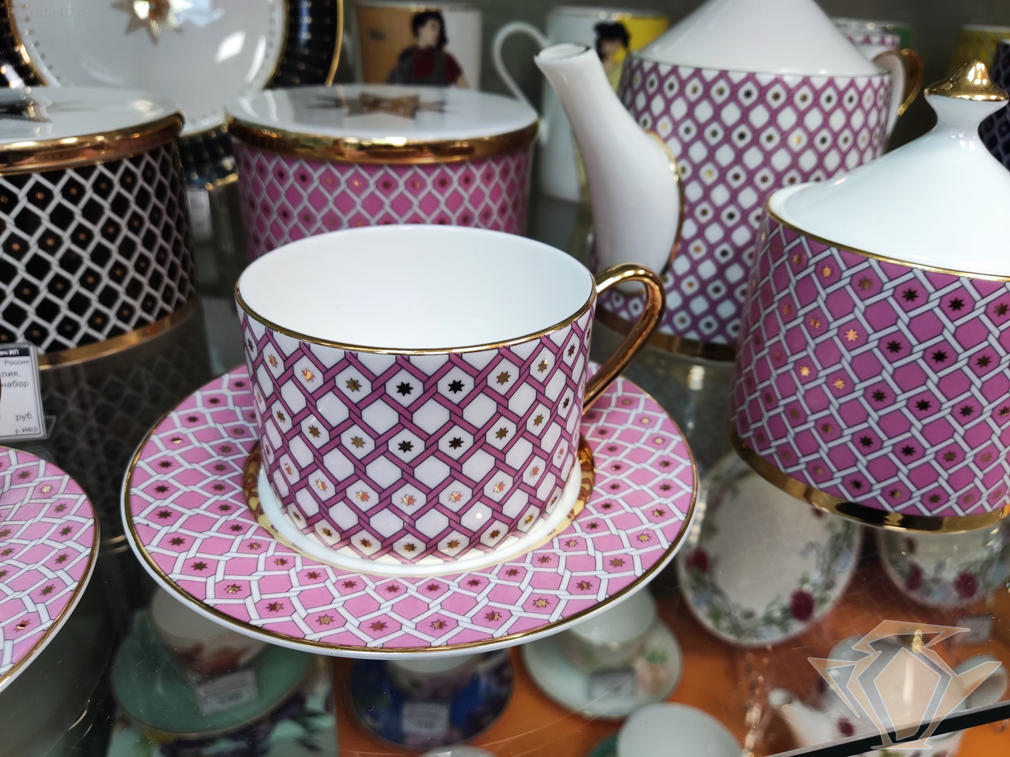 Чайная пара входит в коллекцию «Астра». Нежный, благородный оттенок розового цвета, выбранный для «Астры», напоминает удивительный бриллиант «Розовая звезда». Этот драгоценный камень считается одним из самых редких и дорогих в мире. Геометрический паттерн, созданный художником Юлией Чистяковой, является оммажем на великое наследие Императорского фарфорового завода, включая Собственный сервиз Елизаветы Петровны середины XVIII века и легендарную «Кобальтовую сетку» Анны Яцкевич. Звезды, изображенные на фарфоре, предопределили название коллекции, ведь с греческого «астра» переводится как «звезда».