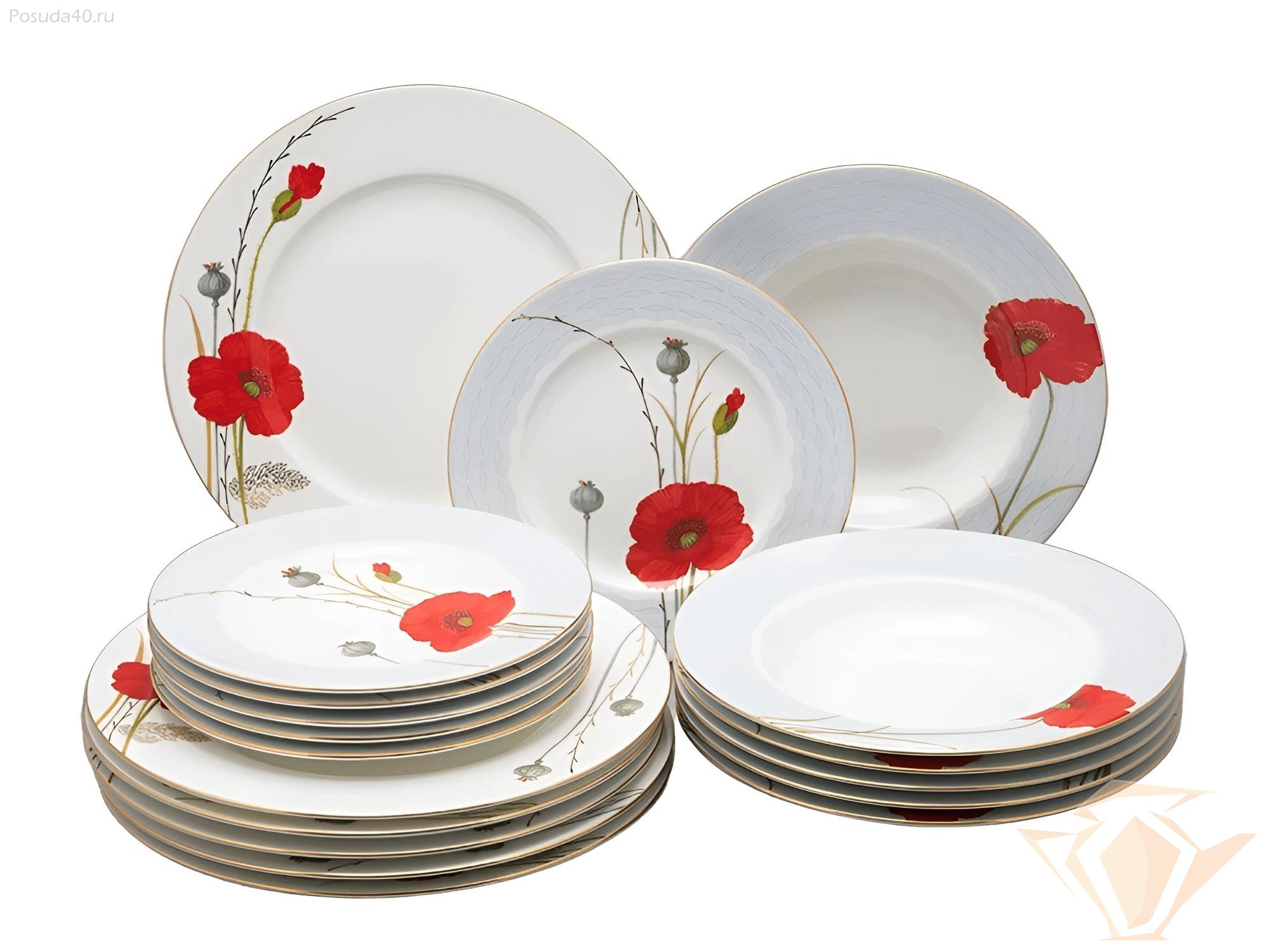 Сервиз столовый Маки, форма Премиум, Императорский фарфоровый завод, 18 предметов на 6 персон