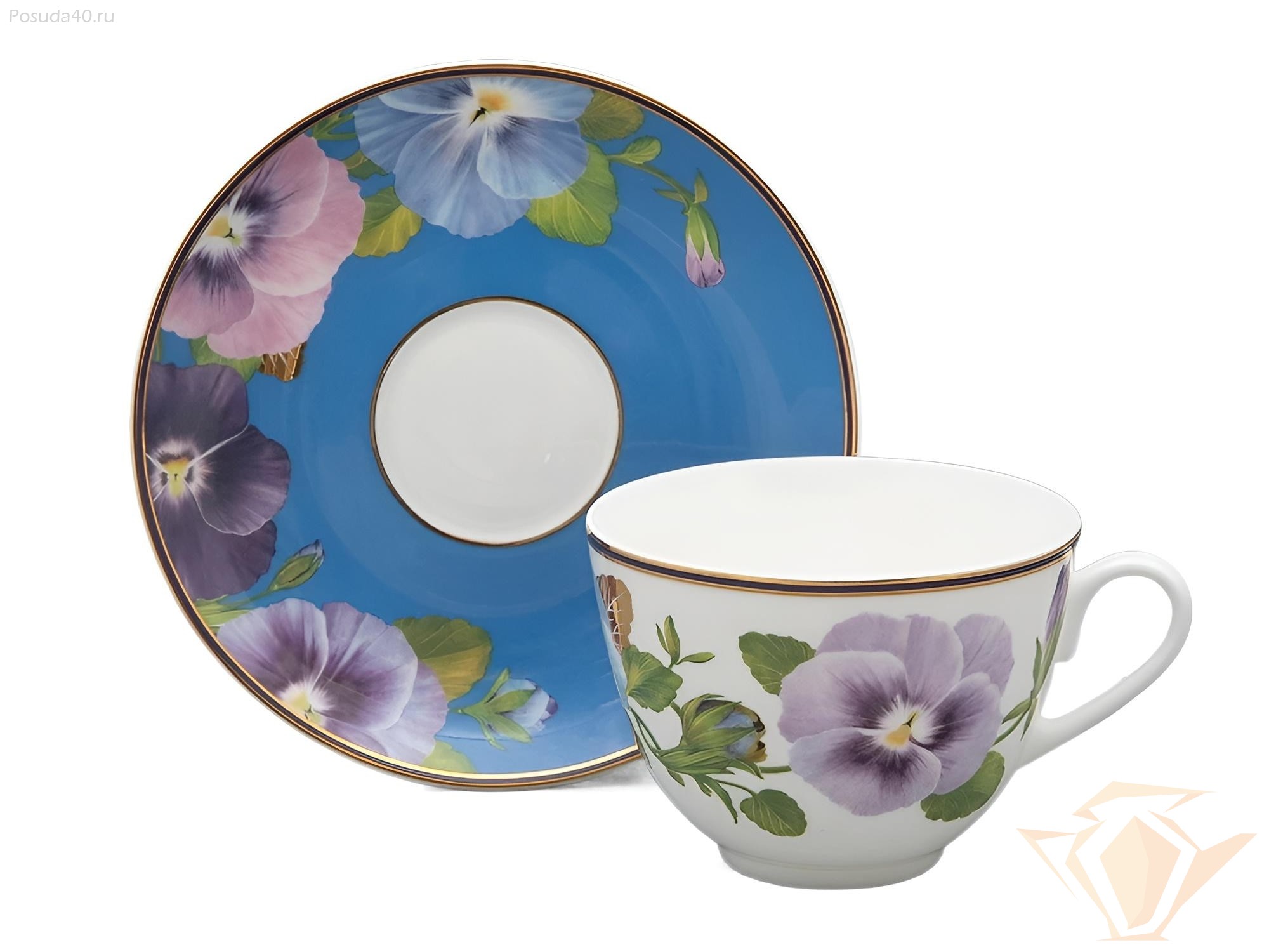 Чашка с блюдцем ИФЗ Весенняя-2, Виола 2, 250мл, костяной фарфор
