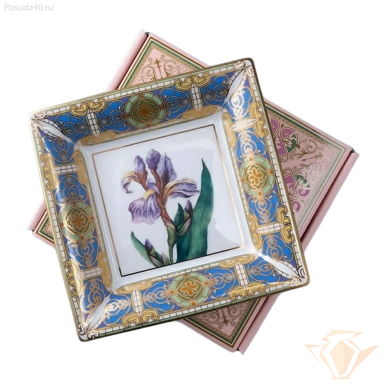 Подставка для мелочей 16,4 x 16,4 см, рисунок Нежный ирис, форма Квадратная, Императорский фарфоровый завод, подарочный набор