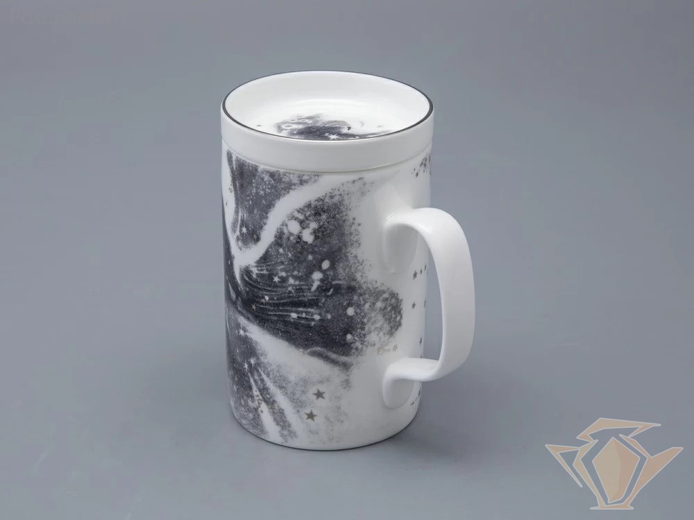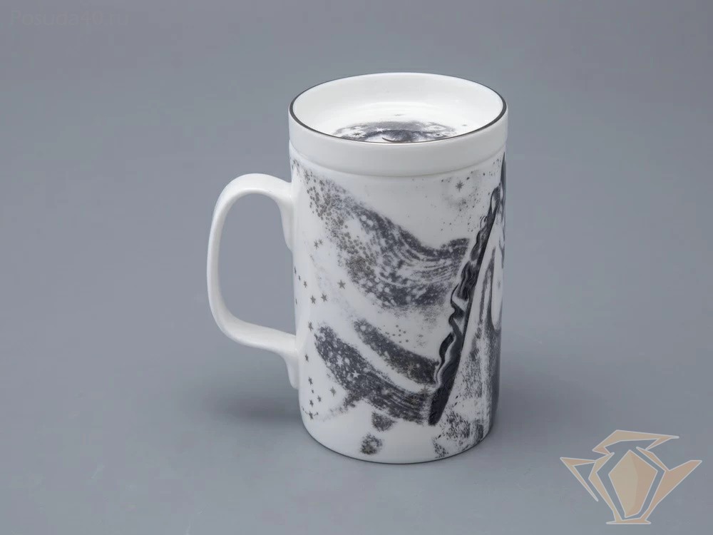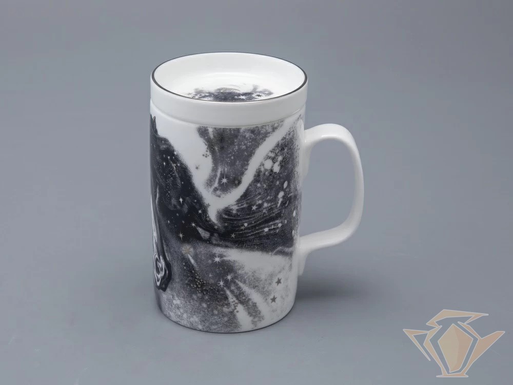 Бокал с блюдцем и крышкой ИФЗ Top, Тотем. Чёрный мустанг, 400мл, подарочная упаковка, костяной фарфор