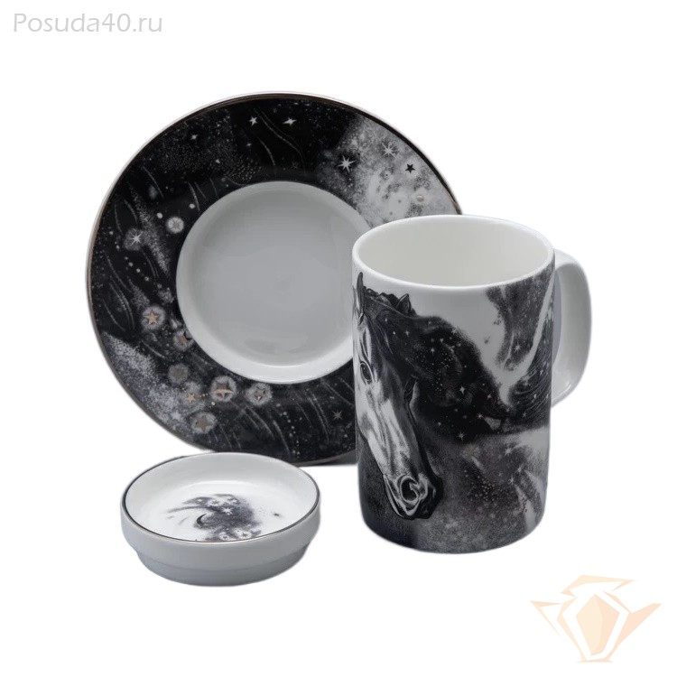 Серия «Чёрный мустанг» состоит из оригинального бокала с блюдцем и крышкой, а также декоративной тарелки, подходящей для украшения интерьера гостиной, кухни или кабинета. Простота и утонченность дизайна позволят гармонично вписать изделия во многие направления декора – от классической роскоши до строгого минимализма. Серия «Черный мустанг» станет прекрасным подарком к наступающим праздникам, дополнением вашего жилого пространства, подарит атмосферу уверенности и гармонии.