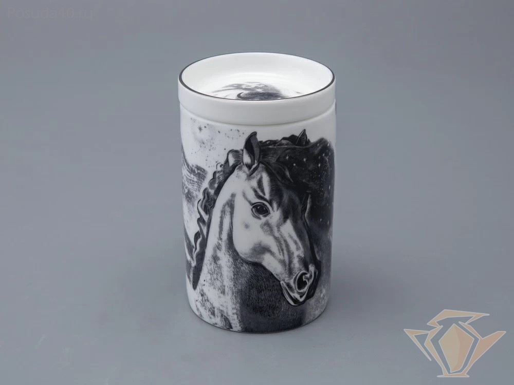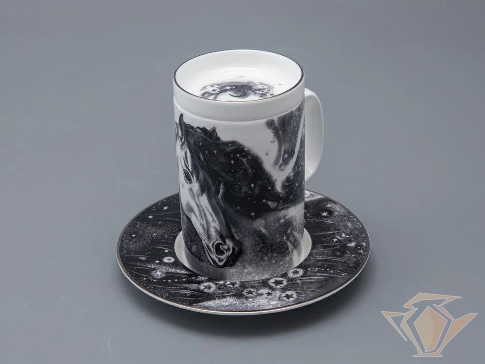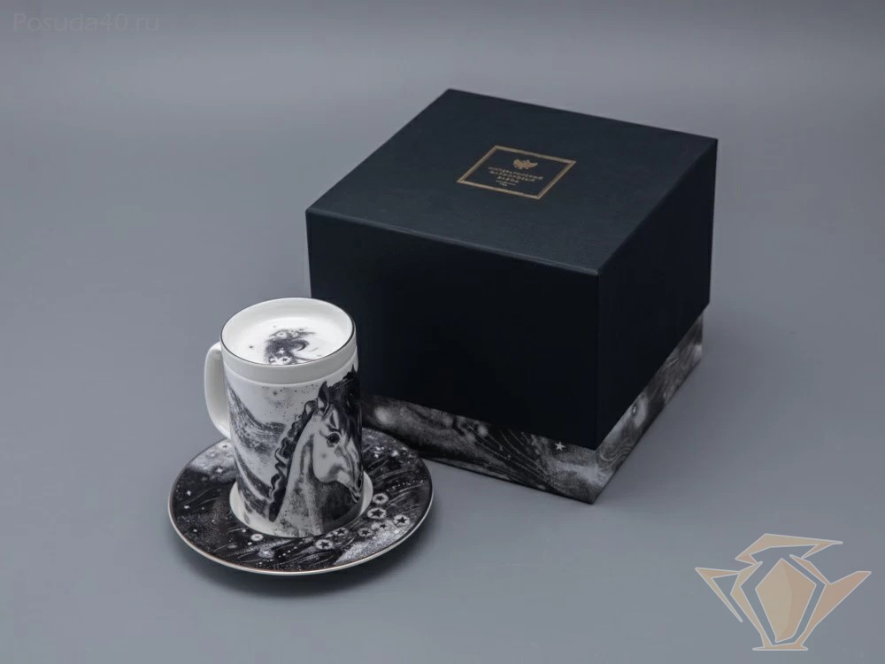 Бокал с блюдцем и крышкой Top, Тотем. Чёрный мустанг, 400мл, подарочная упаковка, Императорский фарфоровый завод