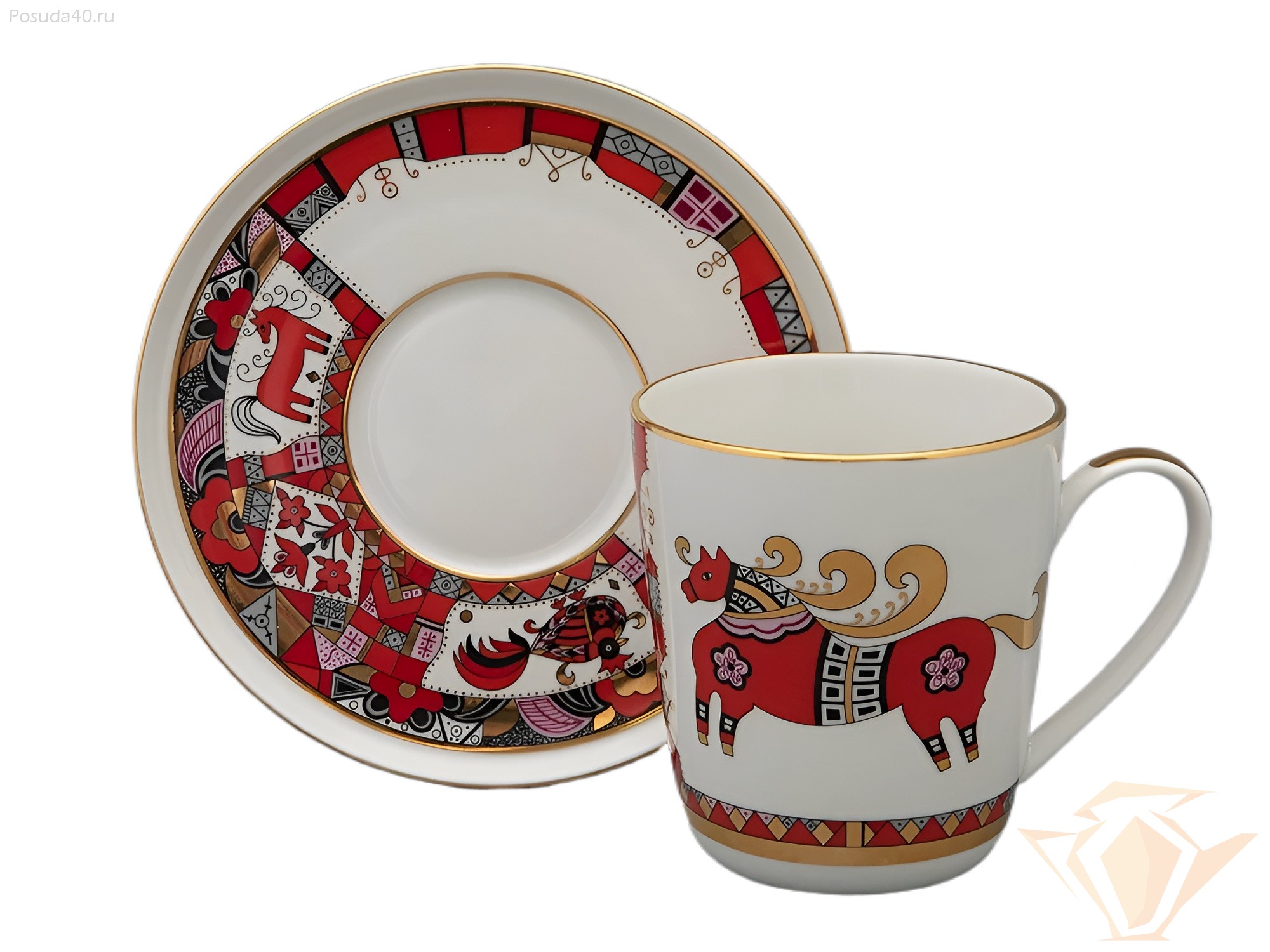 Чашка с блюдцем чайная ИФЗ Колокол, Красный конь, 300мл, фарфор