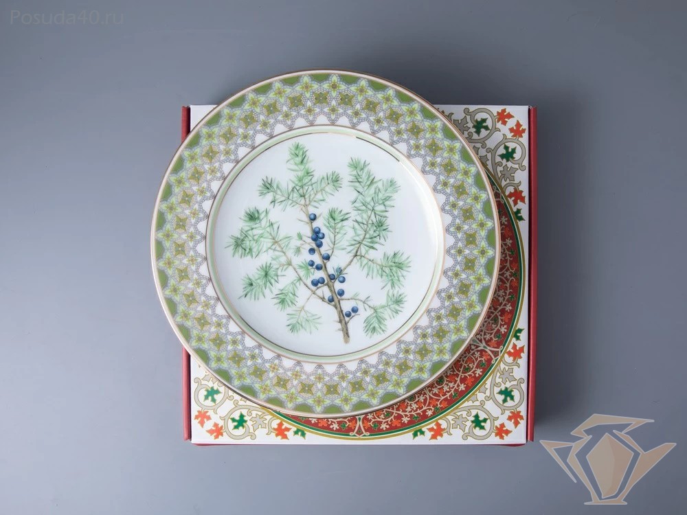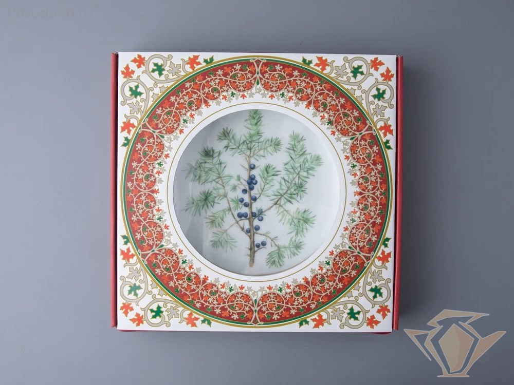 Тарелка декоративная 27 см, рисунок Можжевельник ароматный, форма Европейская, Императорский фарфоровый завод, подарочный набор