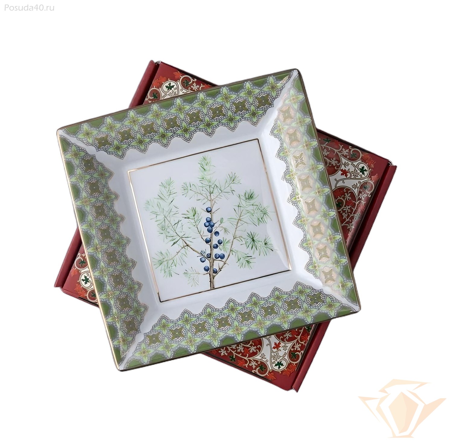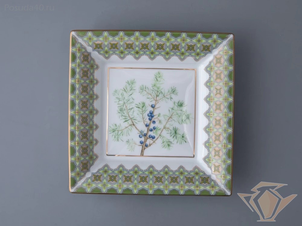 Подставка для мелочей 16,4 x 16,4 см, рисунок Можжевельник ароматный, форма Квадратная, Императорский фарфоровый завод, подарочный набор