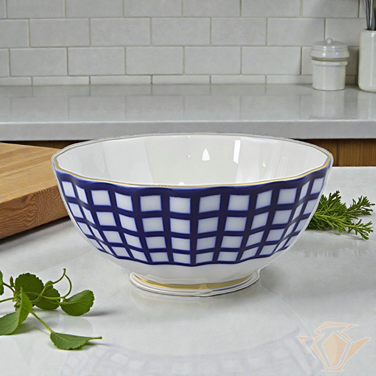 Салатник ИФЗ Тюльпан, Кобальтовая клетка, 385мл, 12см, фарфор