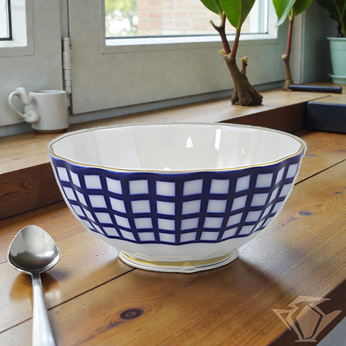 Салатник 12 см, рисунок Кобальтовая клетка, форма Тюльпан, Императорский фарфоровый завод