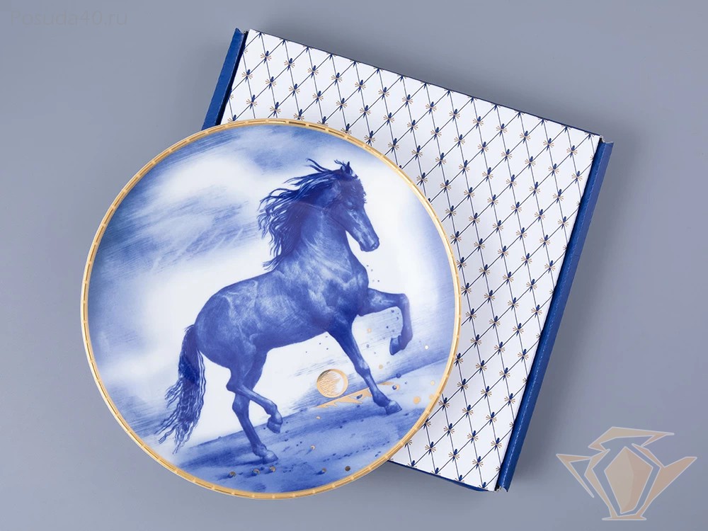 Неповторимую грацию и жизненную энергию лошади отобразила на декоративной тарелке Нелли Петрова. Автор подчеркивает мощь и силу животного, тщательно прорисовывая мельчайшие детали экстерьера. При этом Нелли Петрова не забывает о балансе: художник использует сдержанную цветовую палитру, где каждый полутон продуман и гармоничен, где игра света и тени создает объем и динамику, делает рисунок живым и выразительным. Автор не случайно дает рисунку название «Пепел», сравнивая масть лошади именно с его насыщенным цветом. Завершенность рисунку придает использование натурального золота. Такая декоративная тарелка прекрасно впишется в праздничную атмосферу, напомнит о мечтах и стремлениях, которые захочется воплотить в новом году.