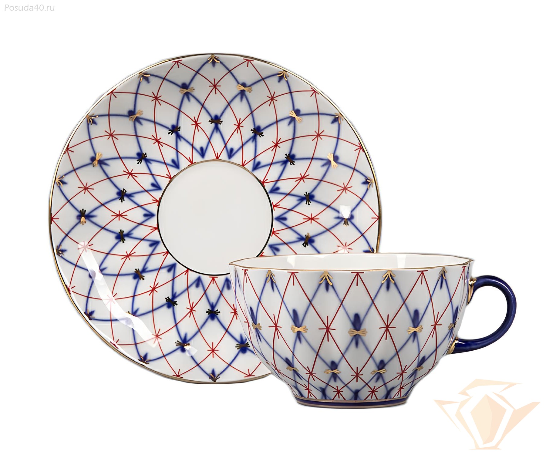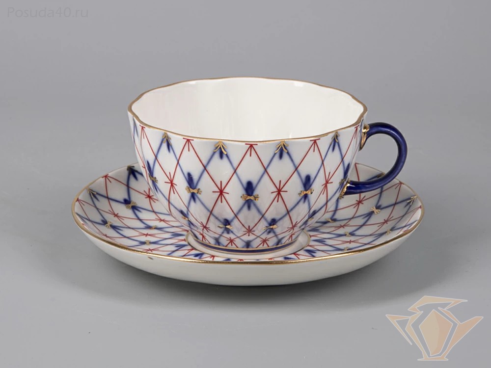 Чашка чайная с блюдцем Сетка 1950, форма Тюльпан, Императорский фарфоровый завод