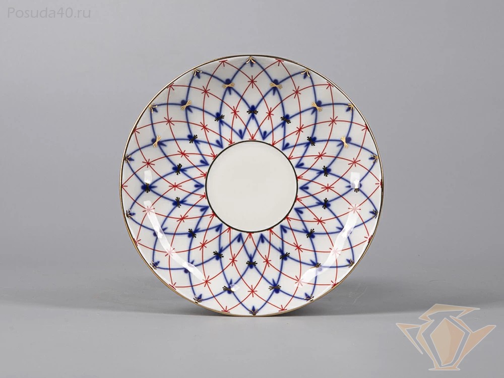 «Сетка 1950» – новый взгляд на один из шедевров великой Анны Яцкевич. Форма «Тюльпан» расположила на себе ритмичный сетчатый орнамент. Простое и, одновременно, оригинальное решение составляют два контрастных классических цвета: красный и синий. Их сдержанный «диалог» по-новому обыгрывает спокойную дольчатую форму. Такой декор, дополненный золотыми акцентами и насыщенным кобальтом ручки чашки, рождает стильный комплект на все времена.