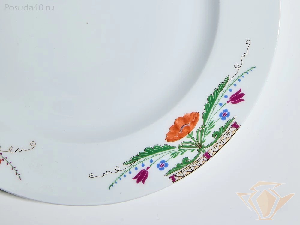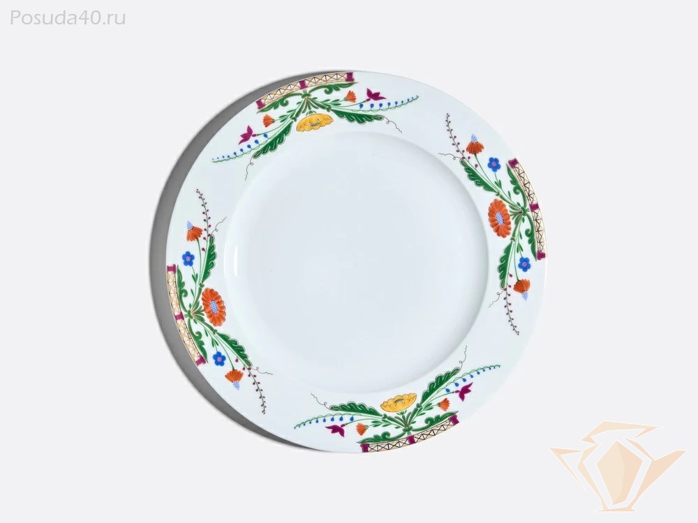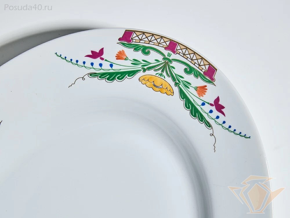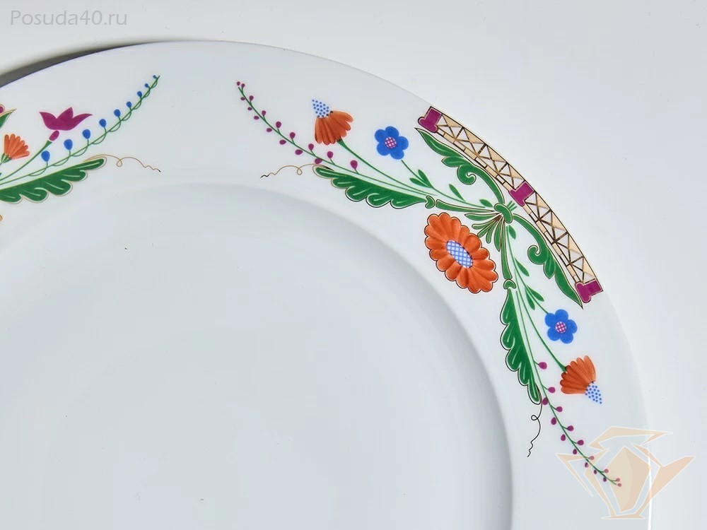 Сервиз из коллекции «Замоскворечье» продолжает традиции русского искусства, объединяя современную лаконичную форму «Европейская» и ручную роспись. В состав сервиза входят обеденные, суповые, закусочные тарелки и сервировочные блюда.