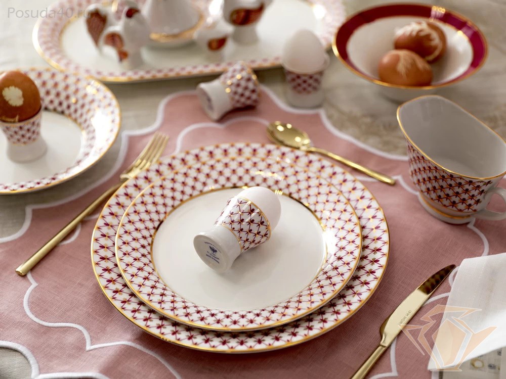 «Сетка-блюз» – это современная интерпретация росписи «Кобальтовая сетка», которую создала Анна Яцкевич. Рисунок переосмыслила художник Галина Шуляк в 2003 году. Пурпурный цвет отсылает к прообразу легендарного мотива – «Собственному» сервизу Императрицы Елизаветы Петровны, выпущенному в 1750-х годах, а сегодня хранящегося в коллекции Государственного Эрмитажа. Столовый сервиз формы «Юлиана» выполнен из костяного фарфора и разработан как продолжение чайно-кофейного ансамбля «Юлия». Плавно выгнутый борт столовых предметов вторит оригинальной силуэтной линии чайно-кофейных форм.
