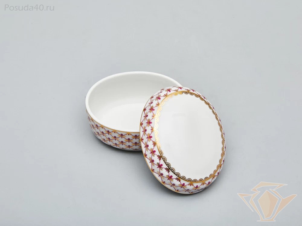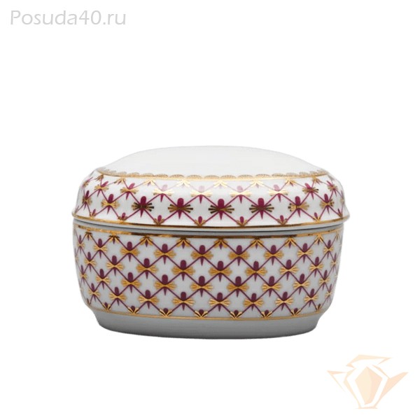 Туалетная коробочка Сетка-блюз 2, форма Овальная, Императорский фарфоровый завод
