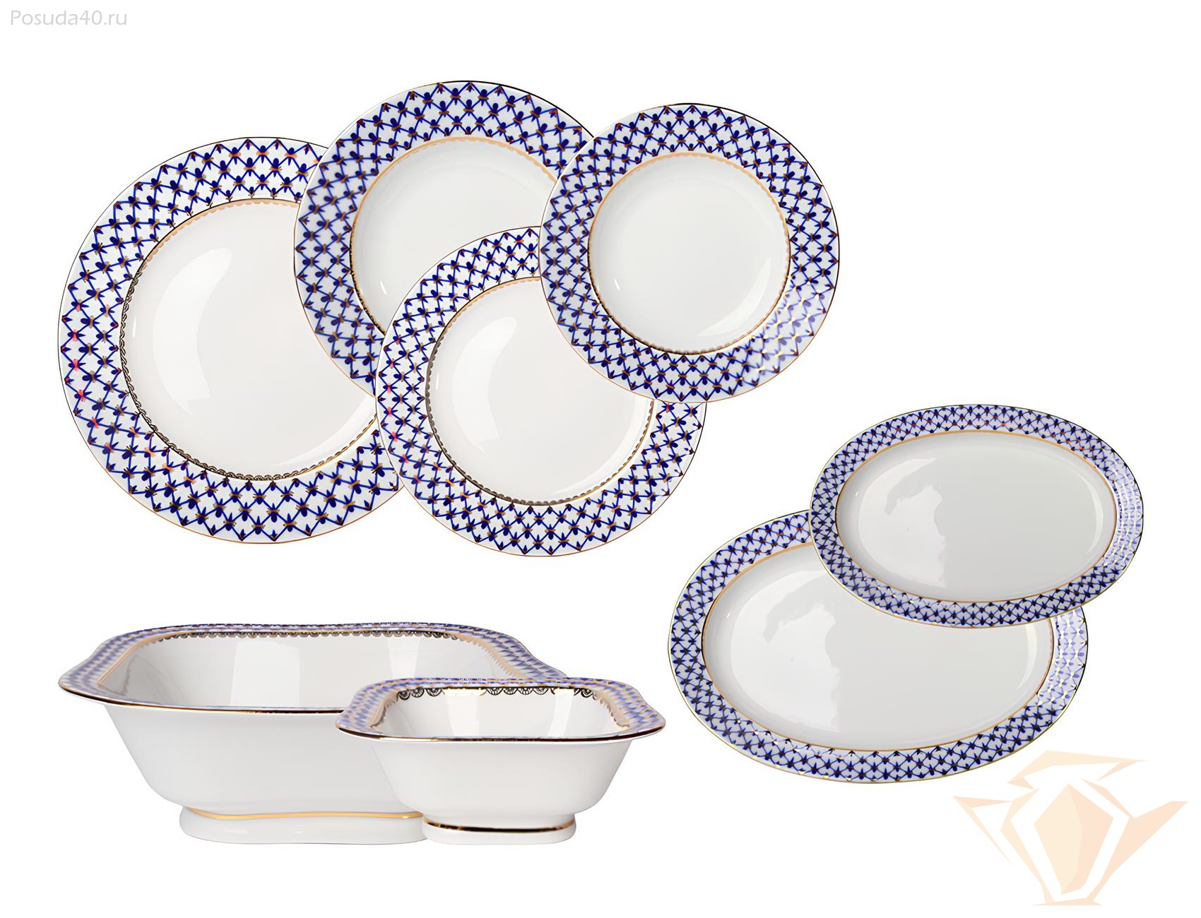 Сервиз столовый Кобальтовая сетка, форма Молодёжная, Императорский фарфоровый завод, 24 предмета на 6 персон
