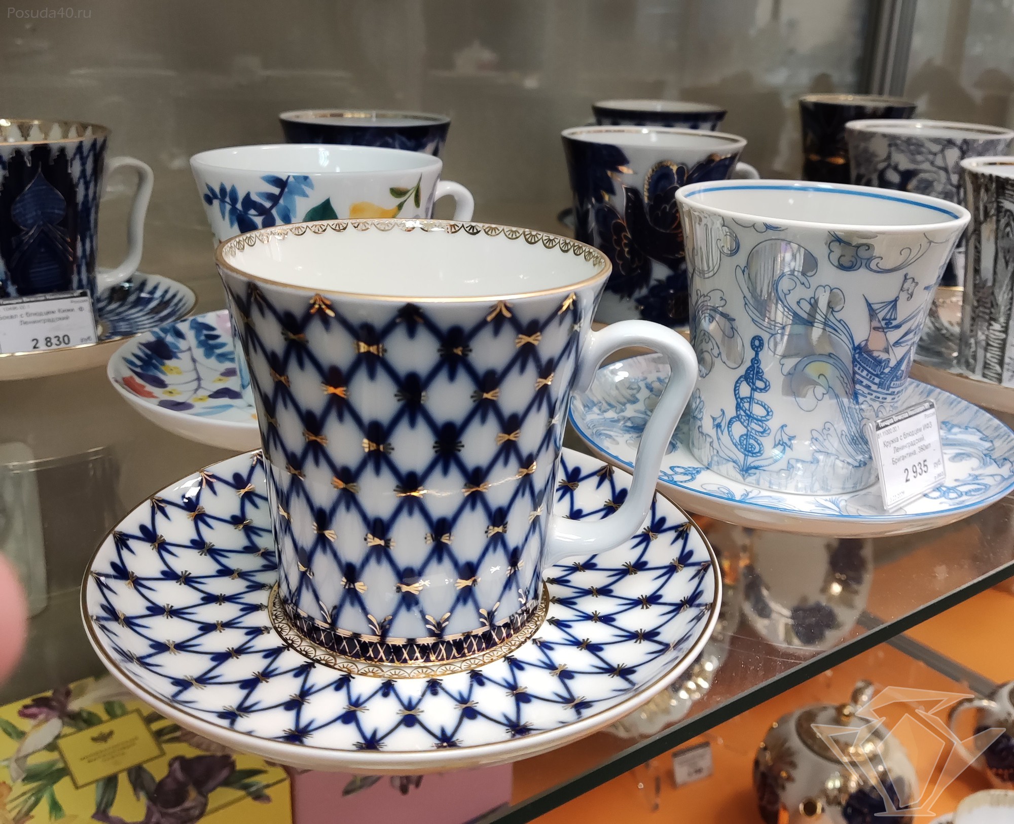 Бокал с блюдцем Кобальтовая сетка, форма Ленинградский, Императорский фарфоровый завод