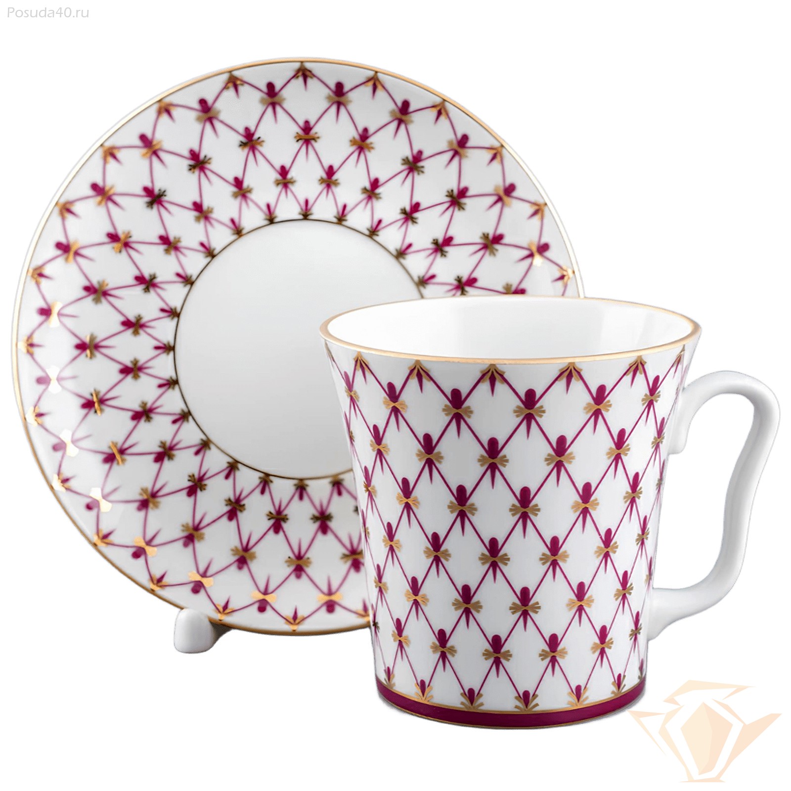 Бокал с блюдцем Сетка-Блюз 2, форма Ленинградский, Императорский фарфоровый завод