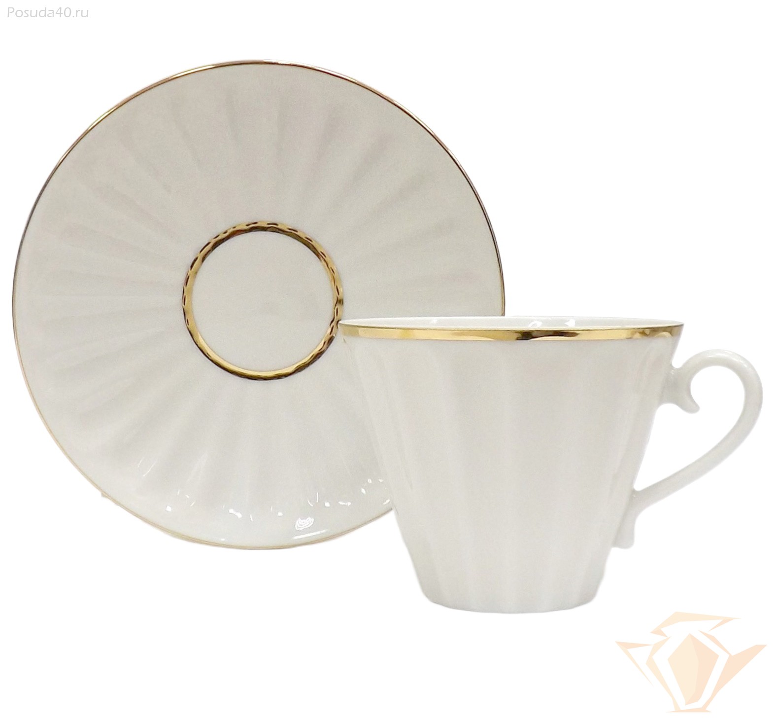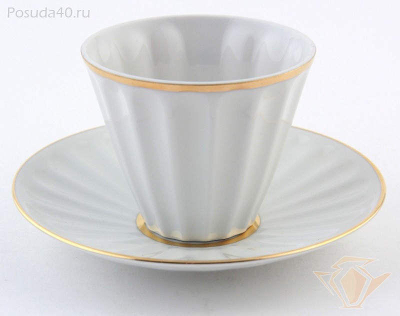 Лаконичный декор чайной пары «Белоснежка» выполнен вручную золотосодержащими красками и позволяет оценить декоративные качества материала и достоинства формы. Форма «Лучистая» разрабатывалась художником Ниной Славиной в 1970-1990-х гг. Несмотря на почтенный возраст, «Лучистая» по-прежнему актуальна, как в своем первозданном белоснежном виде, так и с росписями современных художников.