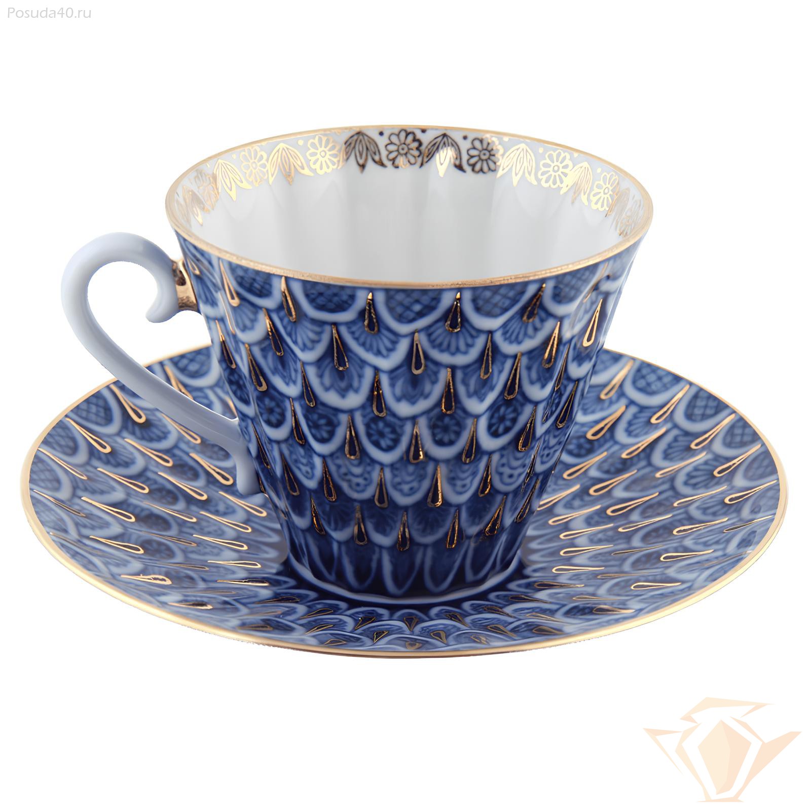 Чашка с блюдцем чайная Незабудка, форма Лучистая, Императорский фарфоровый завод